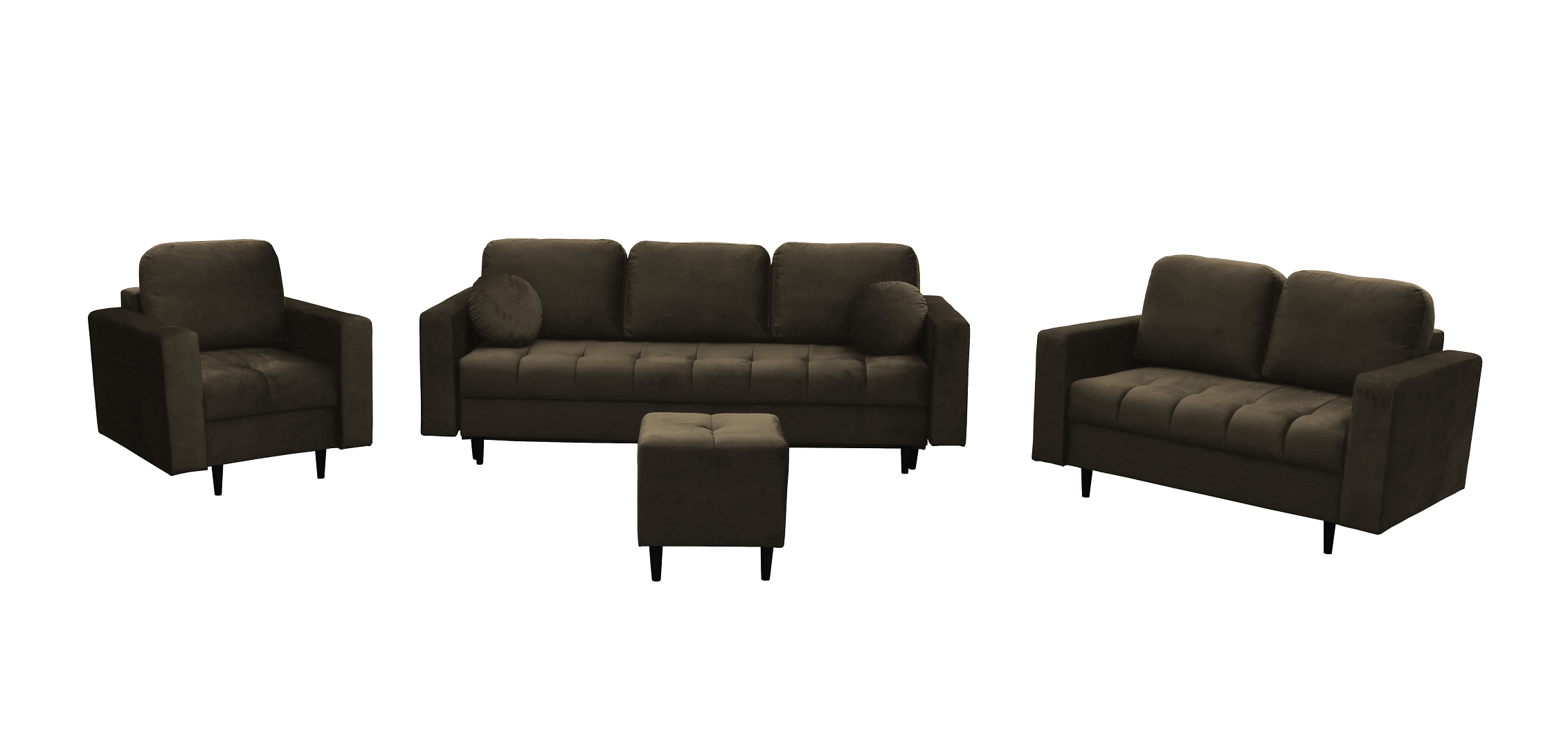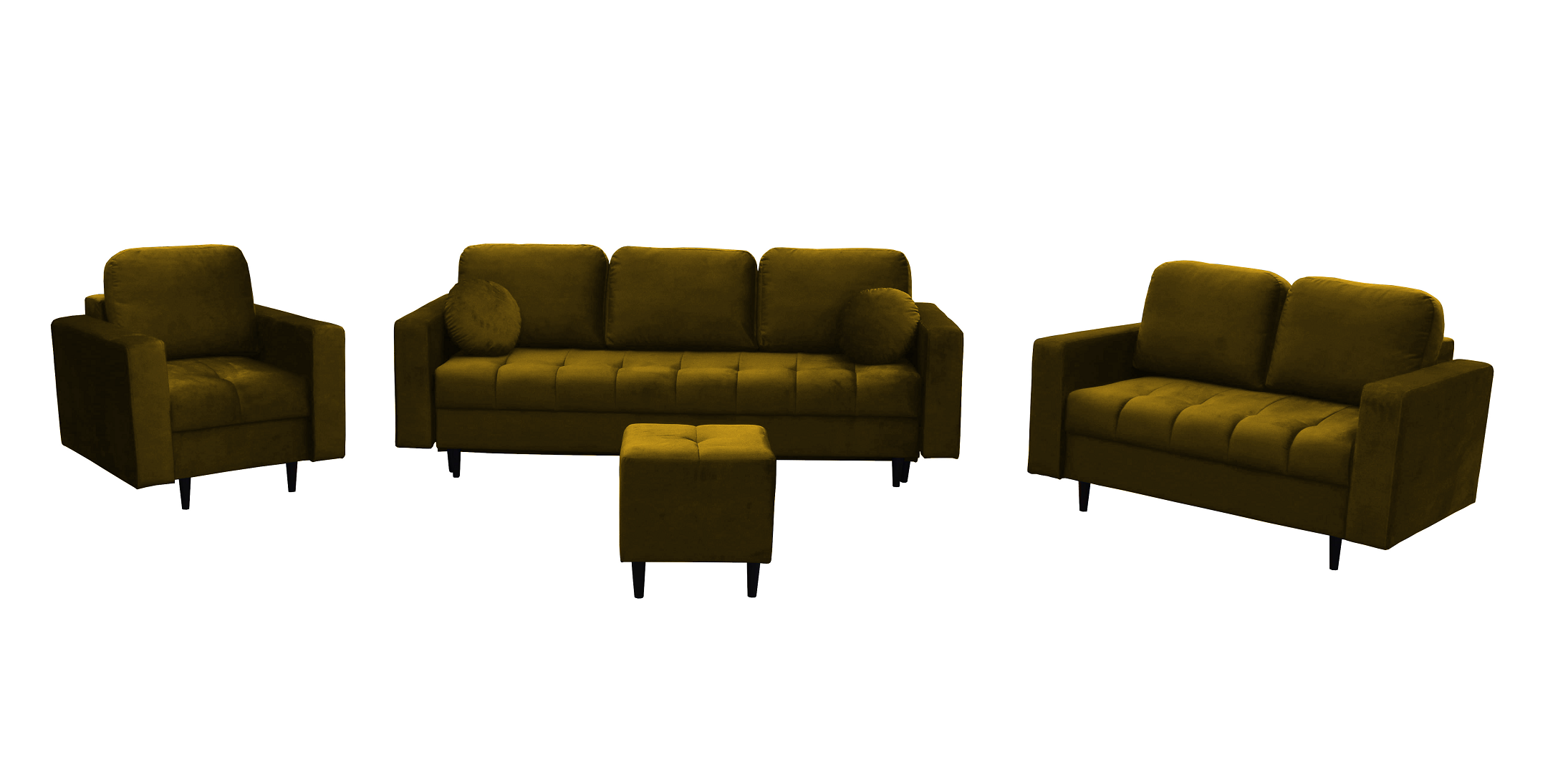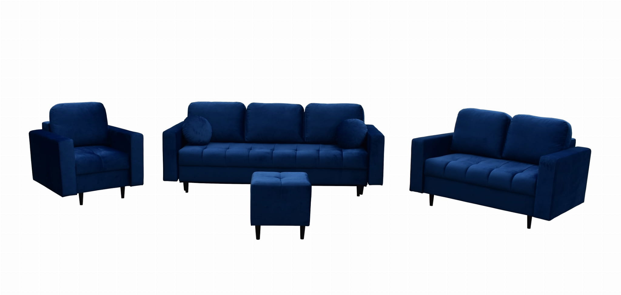 - W skład zestawu wchodzi: Kanapa 3 osobowa z funkcją spania, kanapa 2 osobowa, fotel oraz puf