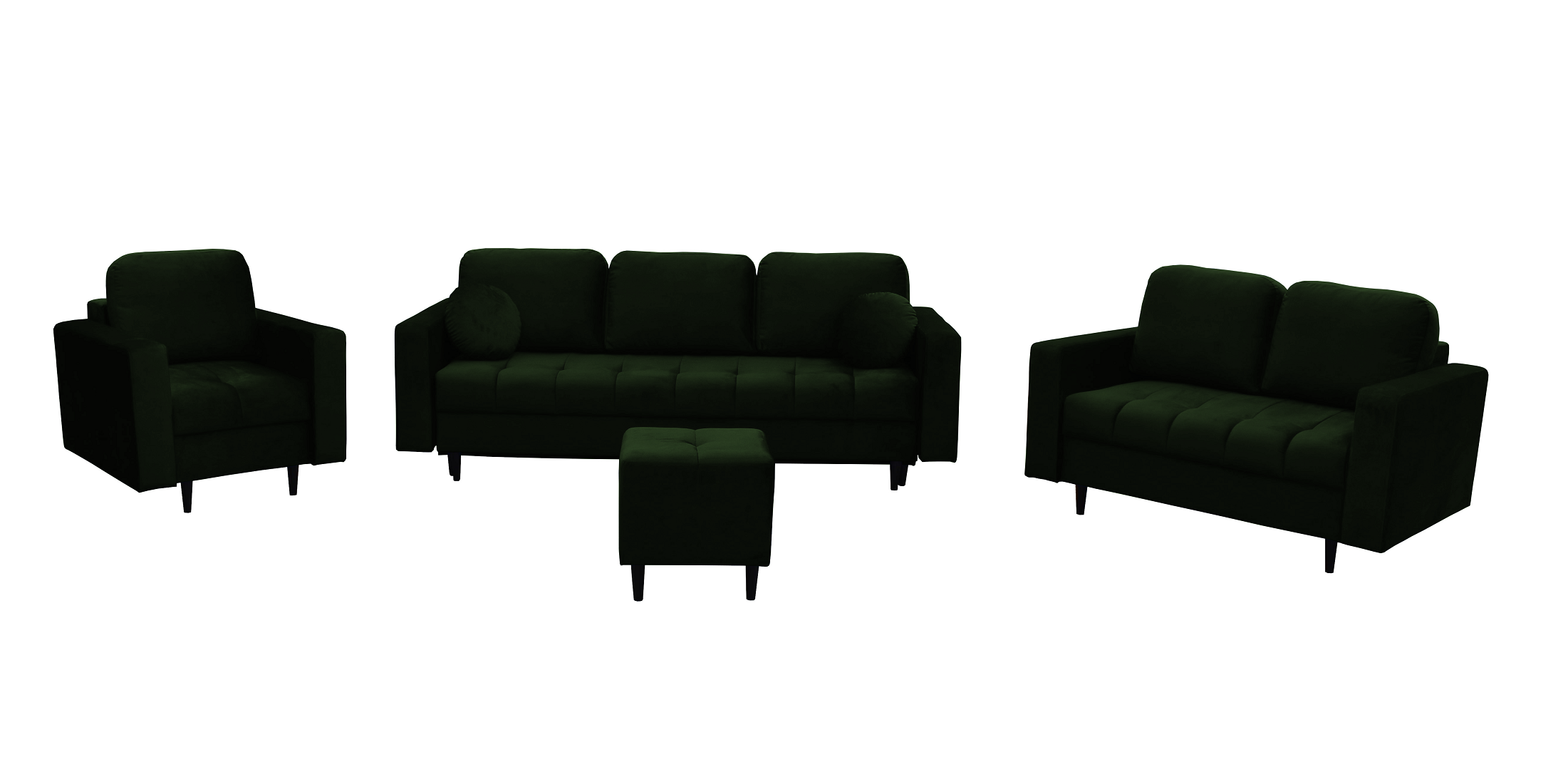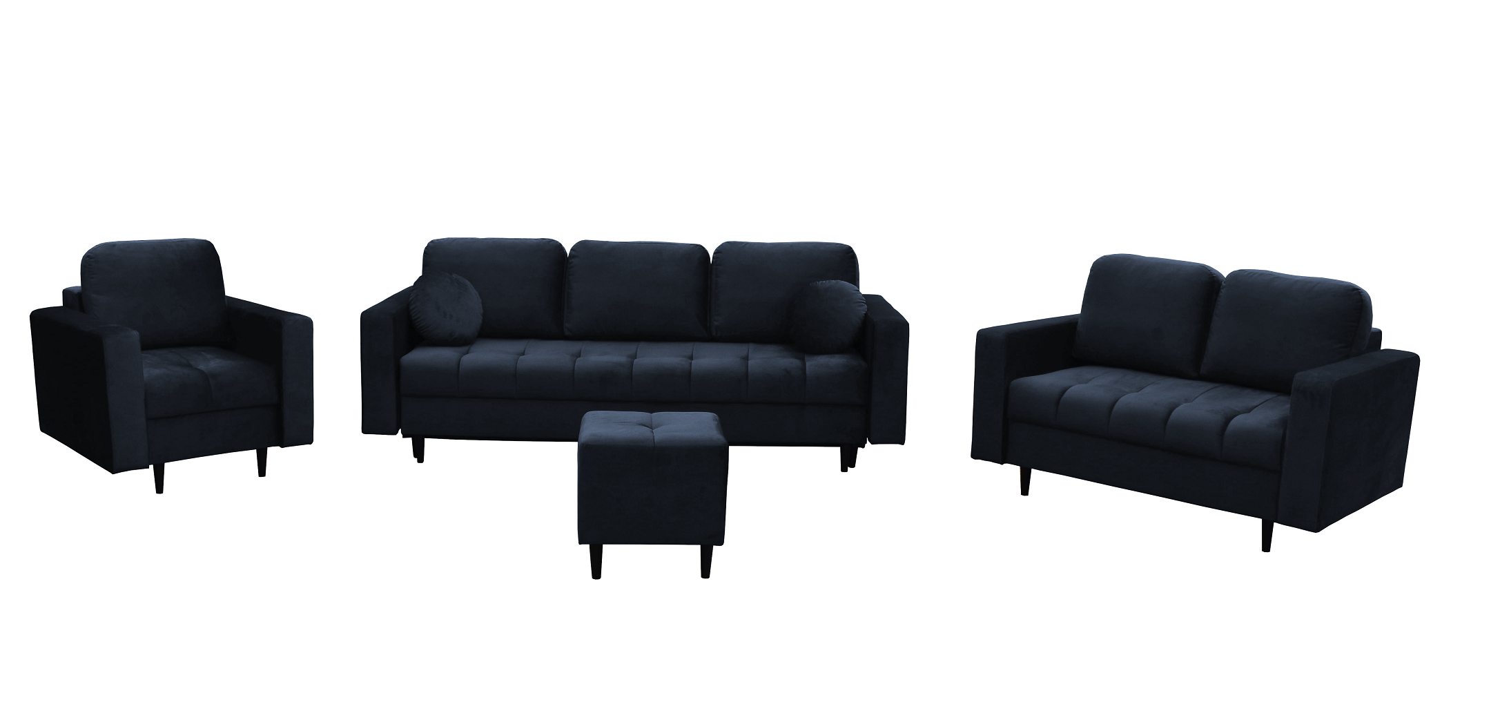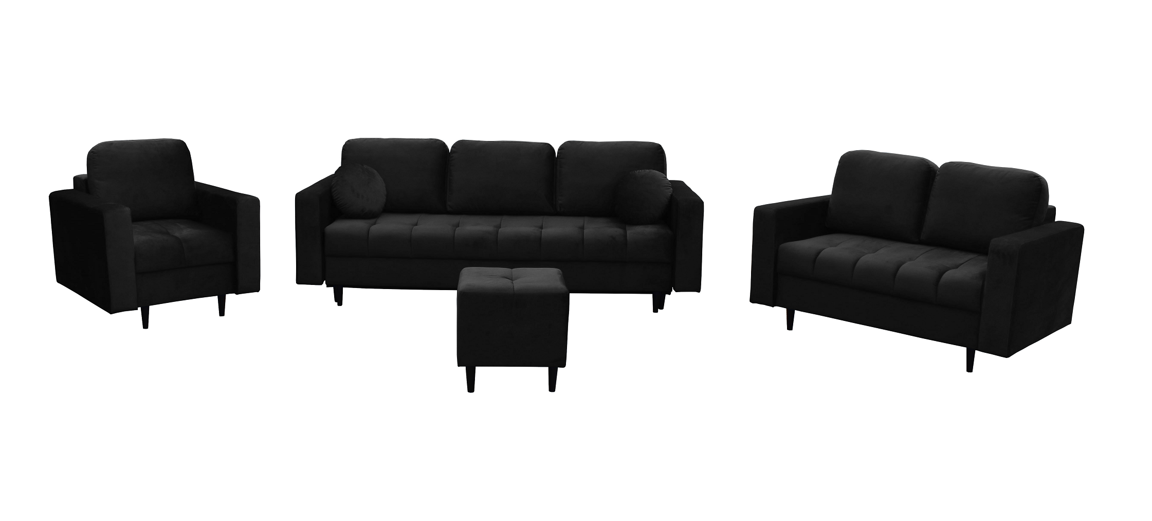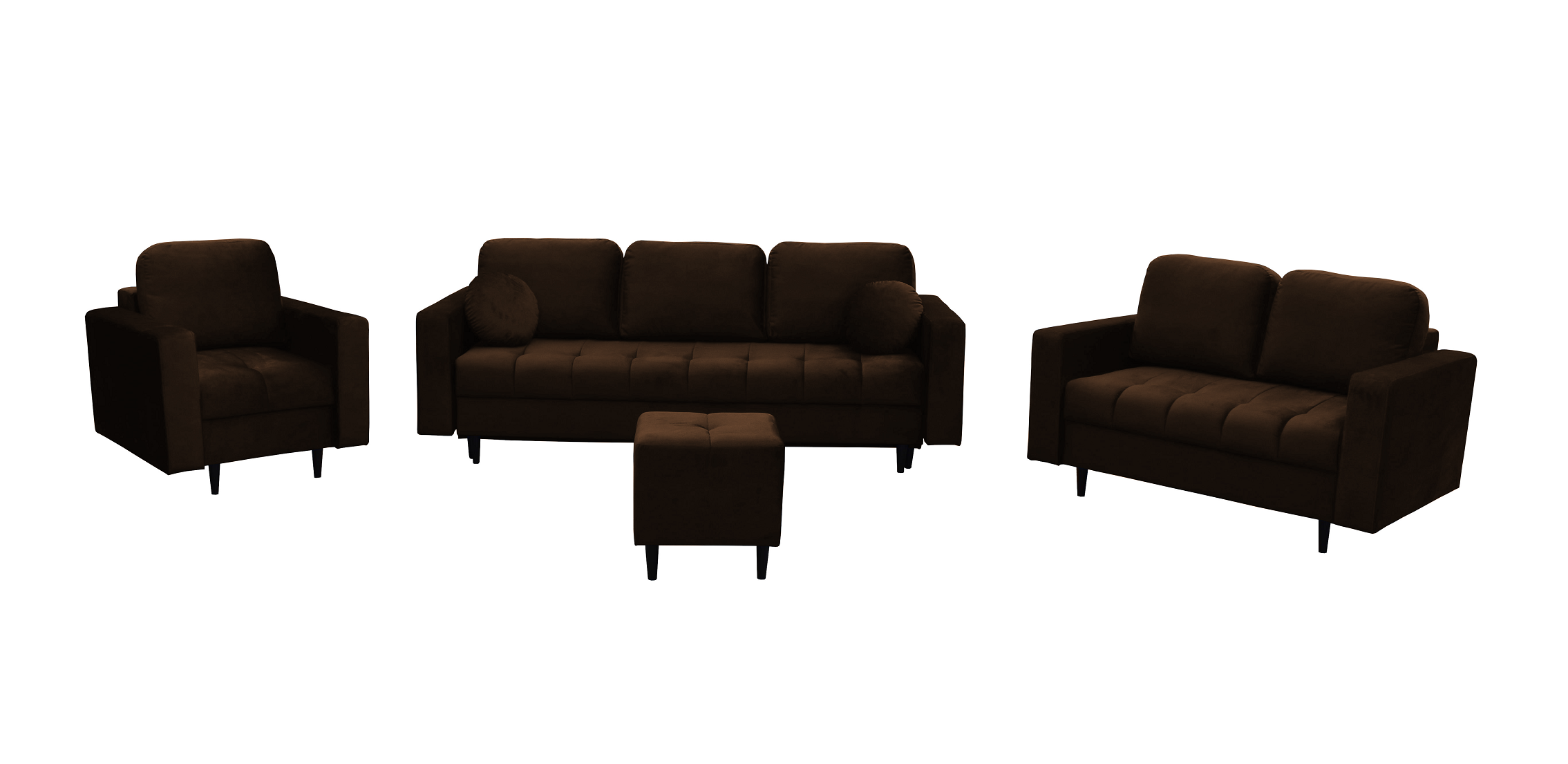 - W skład zestawu wchodzi: Kanapa 3 osobowa z funkcją spania, kanapa 2 osobowa, fotel oraz puf