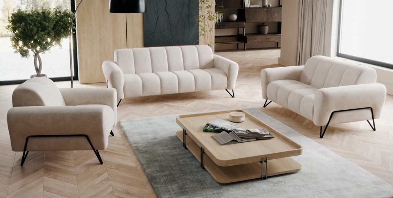 Stylowy, wygodny i dopracowany w każdym detalu zestaw do salonu! Komplet Volare 3+2+1 to połączenie nowoczesnego designu, wysokiej jakości wykonania i maksymalnego komfortu użytkowania. Zestaw Volare został zaprojektowany z myślą o codziennym komforcie. Połączenie sprężyn falistych oraz wysokoelastycznej pianki HR sprawia, że meble idealnie dopasowują się do ciała, zapewniając wygodę zarówno podczas krótkiego odpoczynku, jak i długiego relaksu.